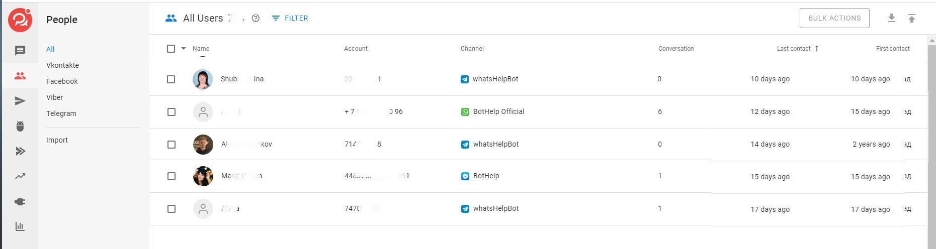 To do this, you need to connect the selected messengers to the BotHelp platform. Everyone who writes to you in the chat will get into the subscriber base, and you will be able to send messages with company news, promotions and discounts.