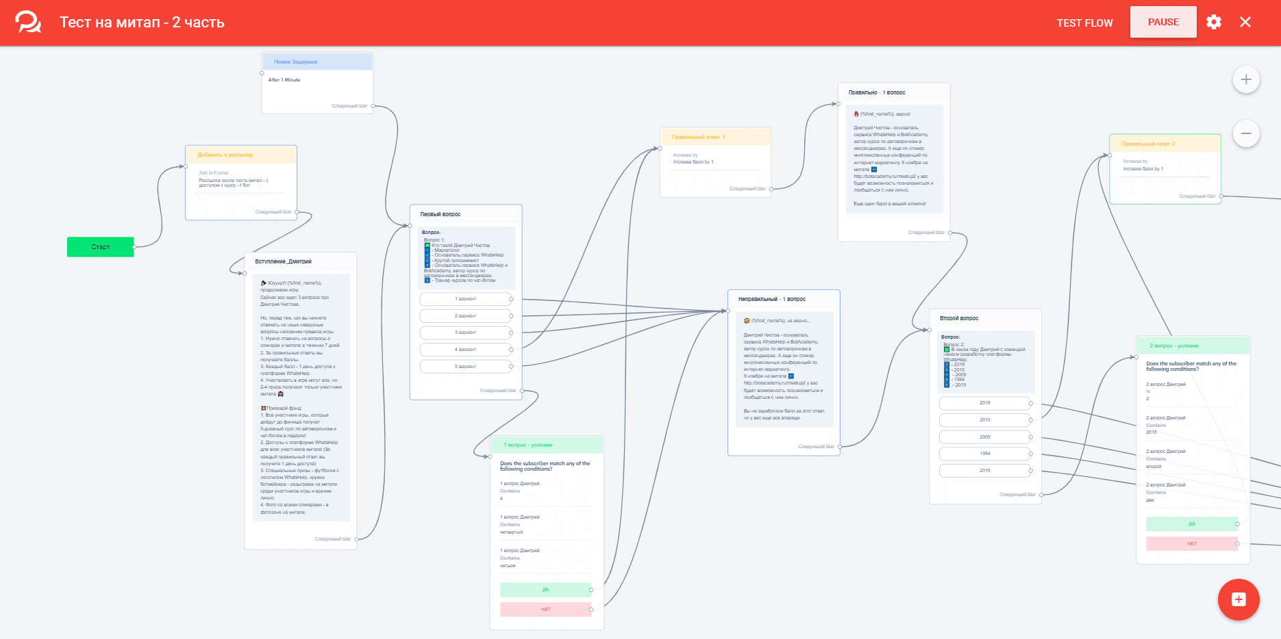Crie chatbots ou campanhas automatizadas em um criador com um belo visual. Nenhum código necessário.