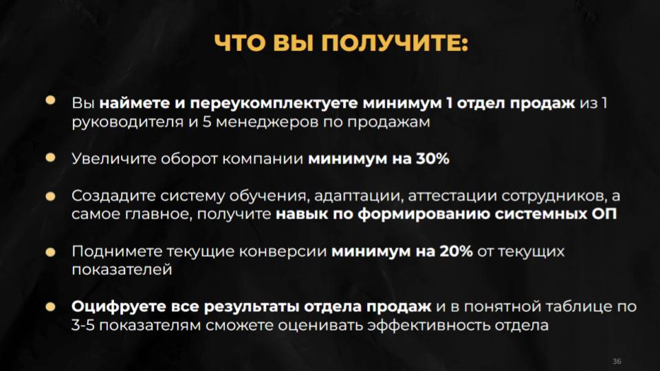 В офере нужно описать конечные результаты по пунктам. Прямо говорим: цена вопроса — это вот столько в месяц за услугу и т. д.