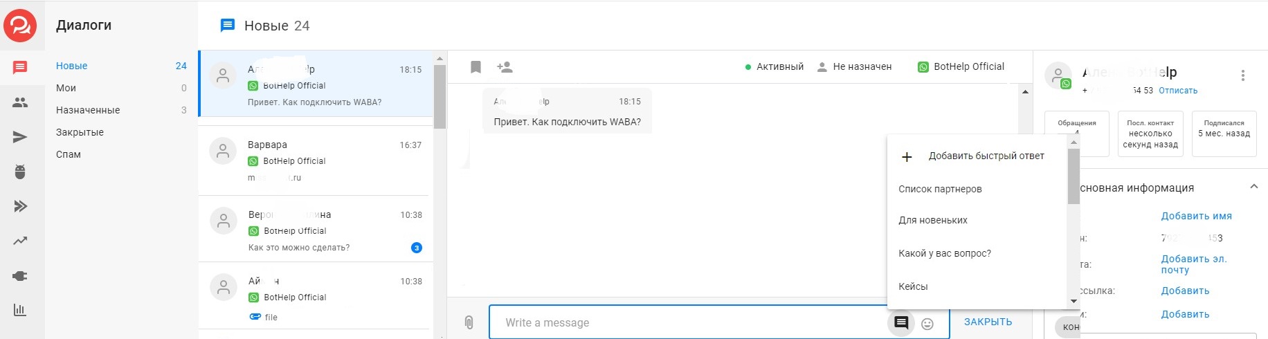 Одним из лучших решений для вас станет платформа BotHelp. Интуитивно понятный интерфейс, подробные инструкции помогут вам без труда подключить WABA и настроить чат-боты для эффективной работы с посетителями сайта.