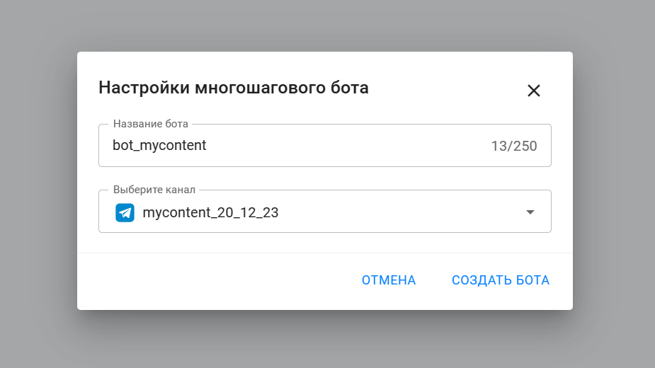 - Добавьте имя чат-бота и выберите канал.