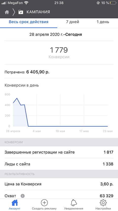 Собрали 1779 регистраций на марафон, затраты на рекламу — 6400 руб.