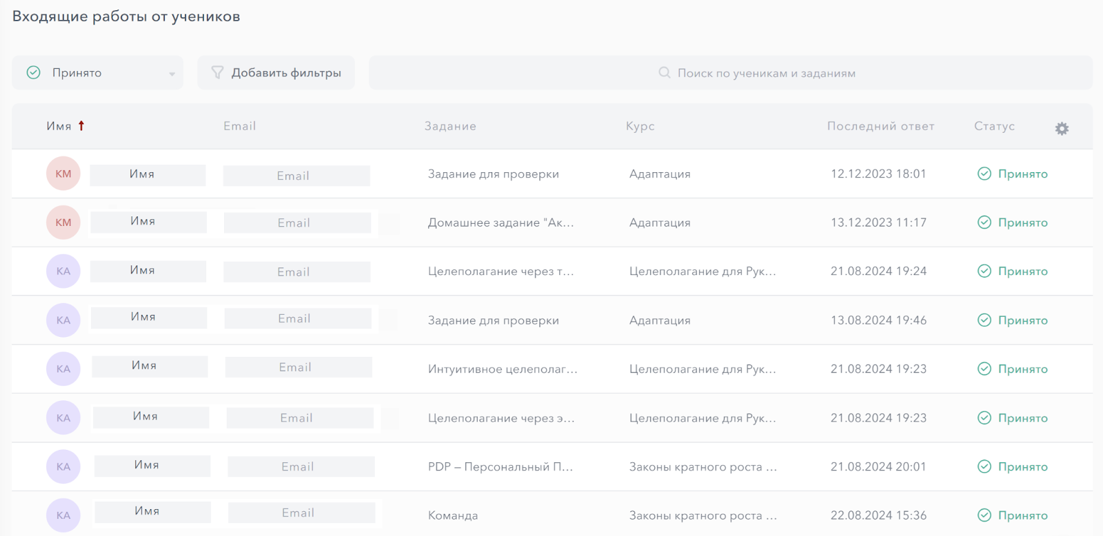 Когда на курсе обучается много людей, платформа позволяет эффективно управлять группами, распределять задания и отслеживать прогресс каждого ученика.