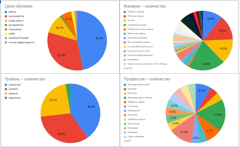 В настоящий момент осуществляется полная перестройка методологии курсов, создание заданий к ключевым урокам, вводится игровой момент. Уже закончена перестройка курса по Google-таблицам, который выдавался ранее как бесплатный продукт к основному курсу по Excel, но запросы аудитории показали, что они готовы за него платить.