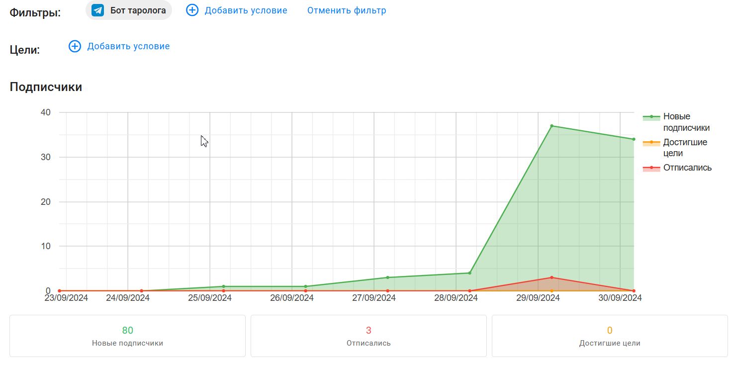 В первые сутки после запуска бота на него подписались 80 человек. При условии, что рилс был запущен на несколько дней ранее и уже не приносил столько просмотров, сколько приносил в первые дни, результат неплохой.