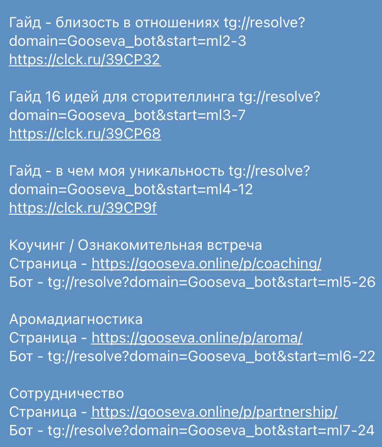 - можно было сформировать ссылки на отдельные воронки и прикрепить к разделам в «Таплинк» или отправлять по запросу и переводить пользователей на нужную услугу;