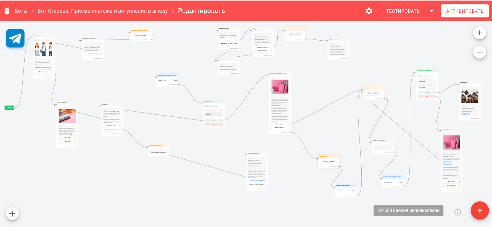 - использовать бота в мессенджерах для простоты доступа к материалам школы и организации воронки продаж.