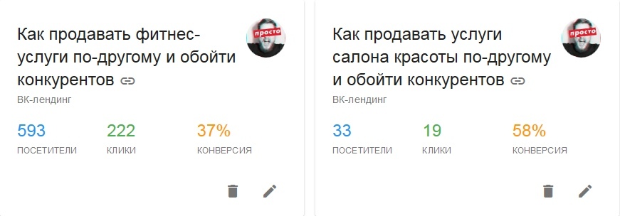 3) Конверсия посадочной страницы (мини landing page):