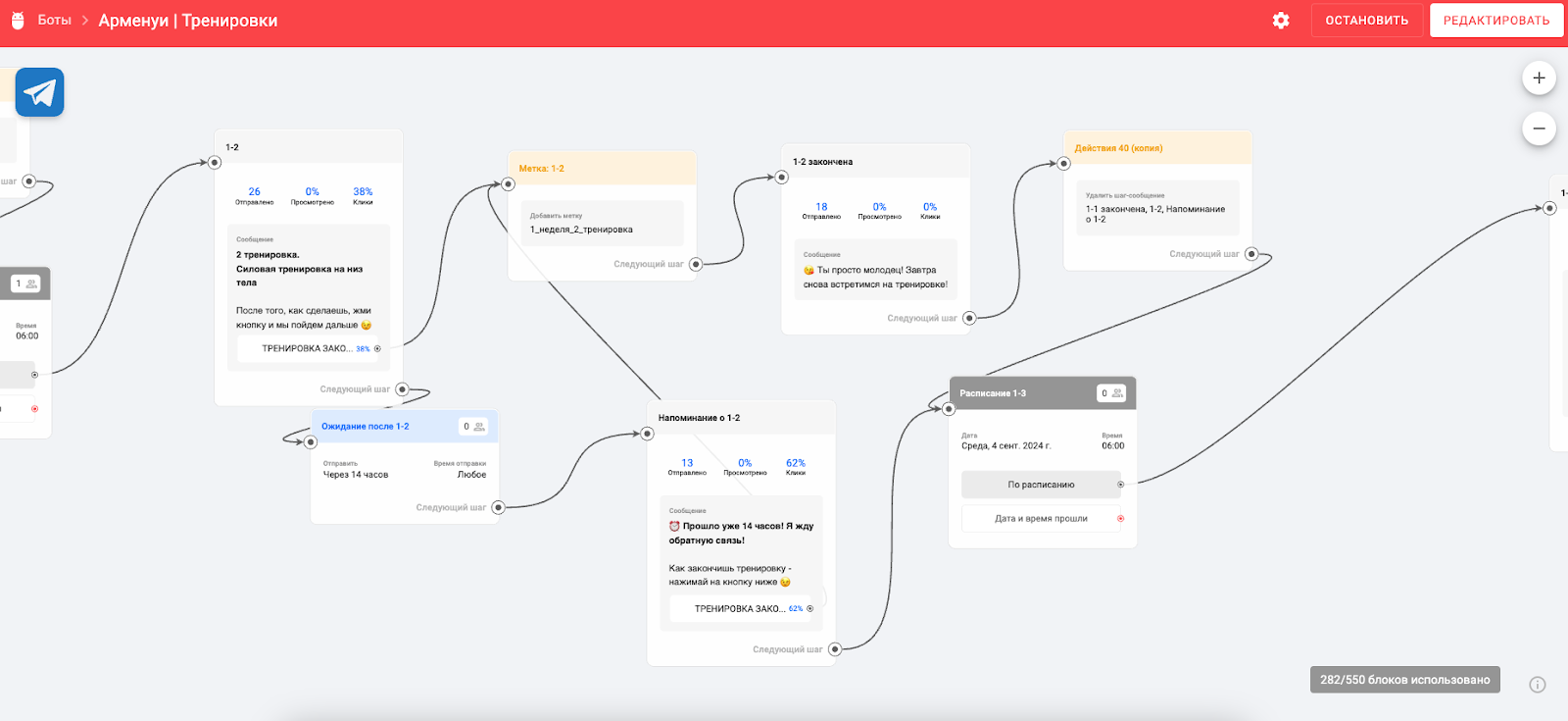 Теперь тренер может заниматься улучшением своего продукта вместо ежедневной рутины, а нам к следующему потоку нужно будет только лишь подкрутить настройки, чтобы следующие участники прошли такой же путь.