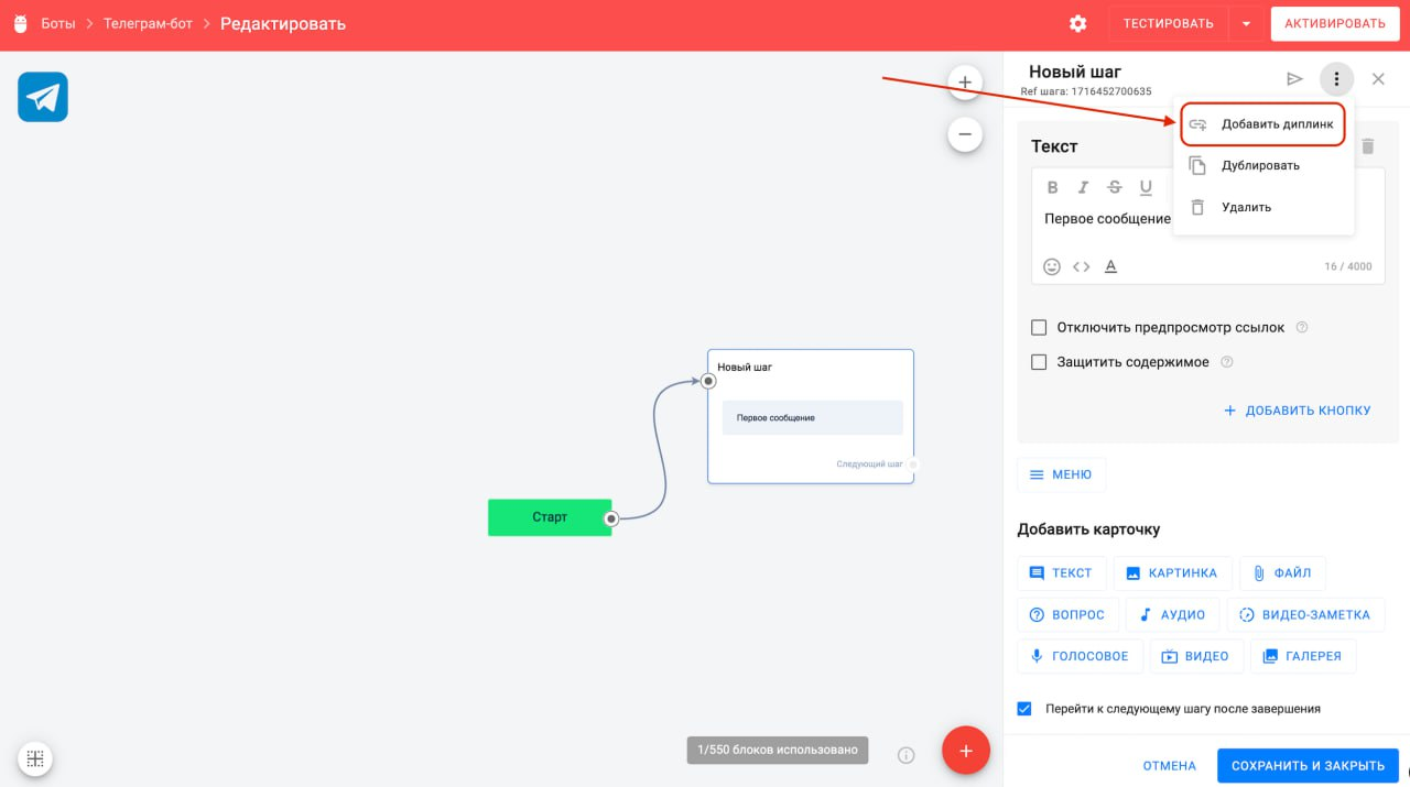 В BotHelp появились диплинки — прямые ссылки, которые позволяют направить пользователя на конкретный шаг конкретного бота.