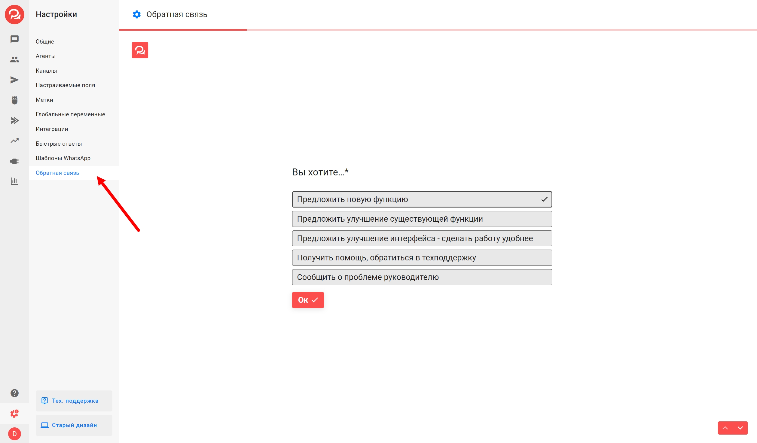 В настройках кабинета появилась форма обратной связи, в которой можно:
