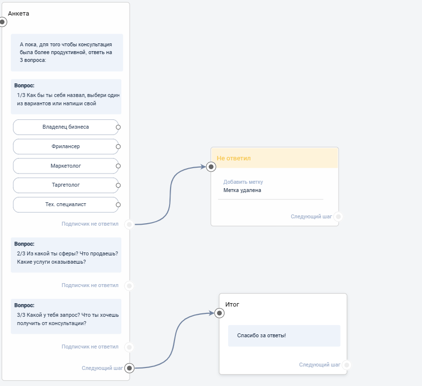 Я делаю анкетирование необязательным, то есть клиент может не отвечать на эти вопросы, я все равно с ним свяжусь, потому что он записался на консультацию. Так, я не теряю конверсию из-за вопросов.