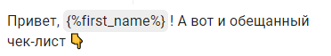 Макрос {%first_name%} автоматически заменится на имя подписчика.