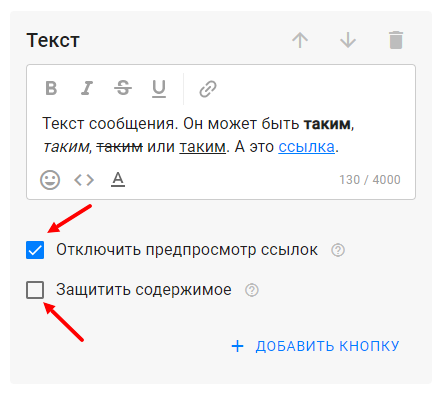 В этом же блоке вы можете отключить предпросмотр ссылок, чтобы иллюстрация ссылки из текста не мешала восприятию контента подписчиком.