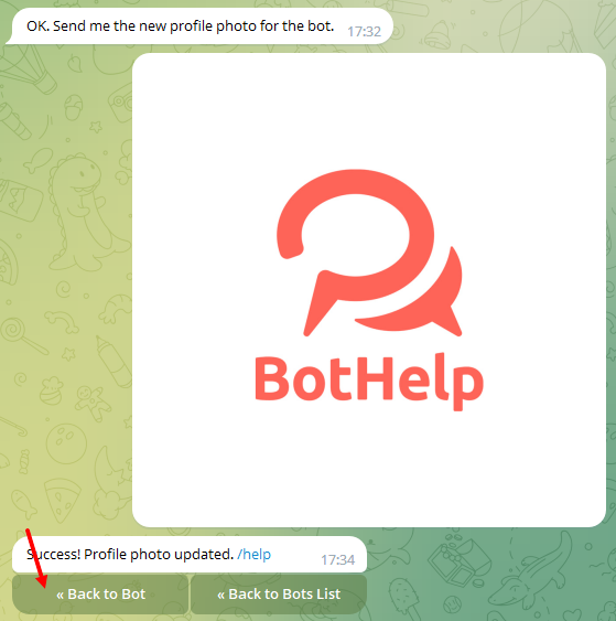 После загрузки изображения жмите Back to Bot → Edit Bot.