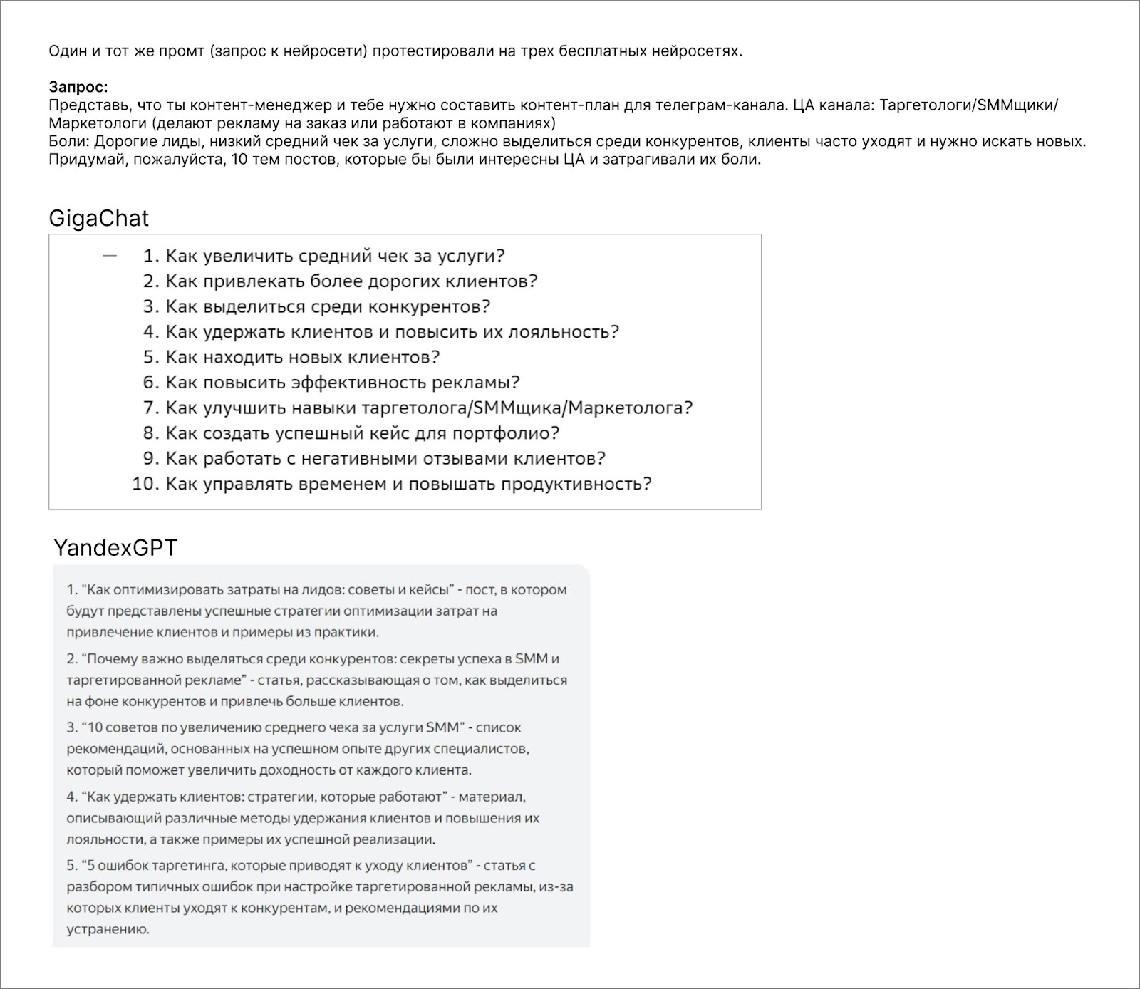 Чтобы не быть кэпом, не будем в миллионный раз рассказывать о том, что нейросети могут создавать иллюстрации, тексты, видео, аудиоконтент. Кроме очевидных задач, нейросети подходят для мозговых штурмов, генерации новых идей, создания сценариев, изучения ЦА через интервью.