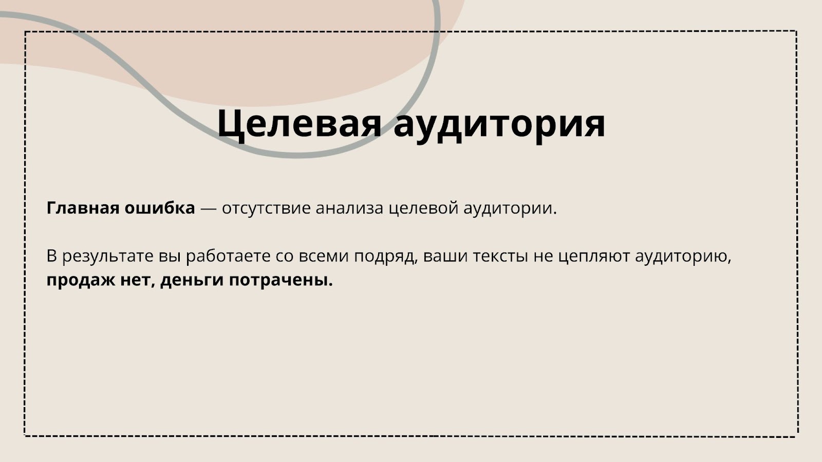 Обобщенные тексты. Эта ошибка идет из самой первой, если нет анализа целевой аудитории.