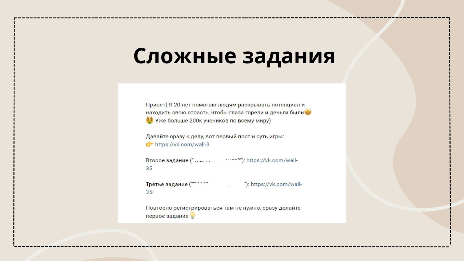 Сложные задания для подписчиков. Например, сообщение выше я получила сразу после регистрации на мастер-класс.
