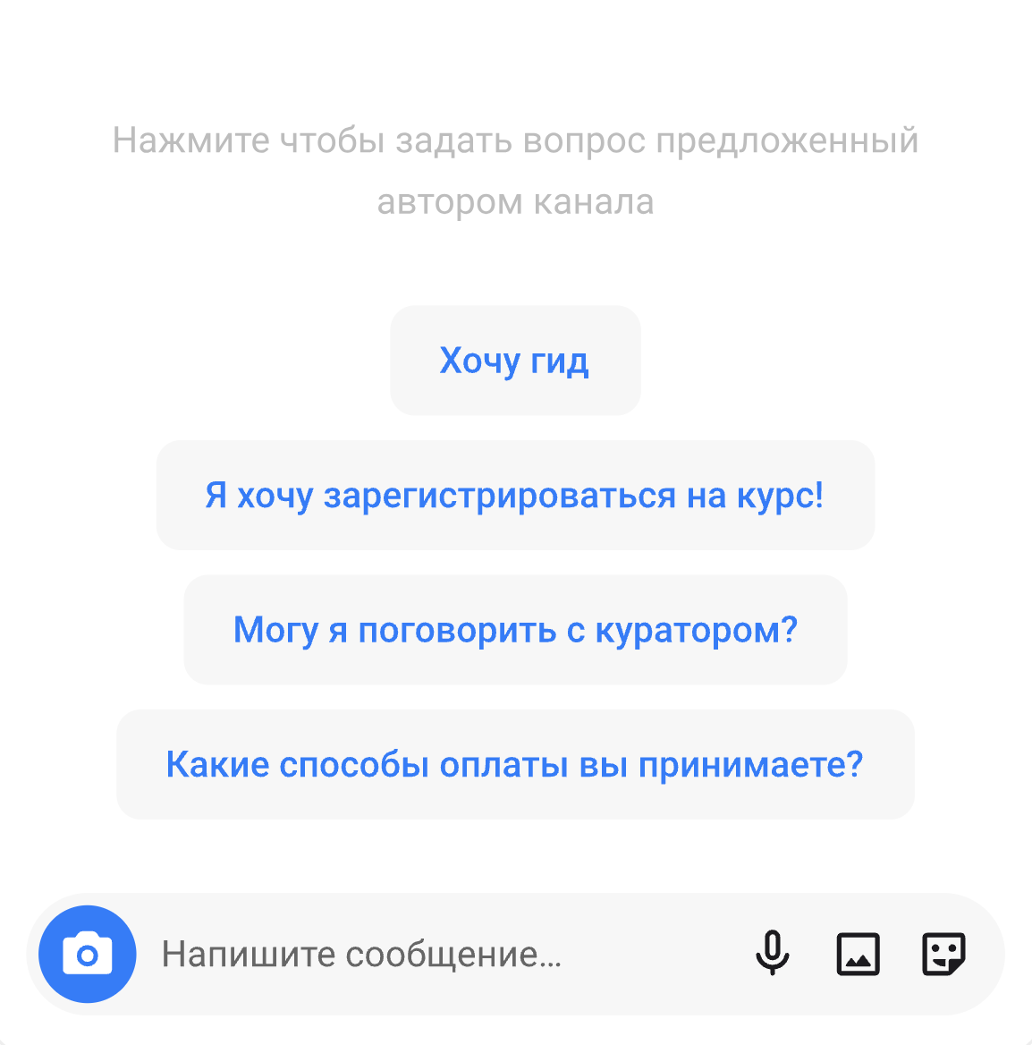 Разместите в Ice Breaker ответы на часто задаваемые вопросы, и подписчик сможет одним кликом запускать бота.