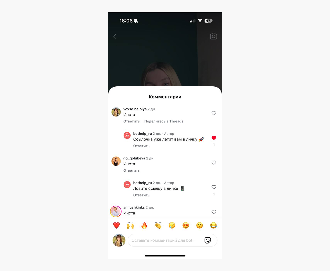 Поможет настроить автоматическую реакцию на комментарии под постами и рилс в Instagram*.