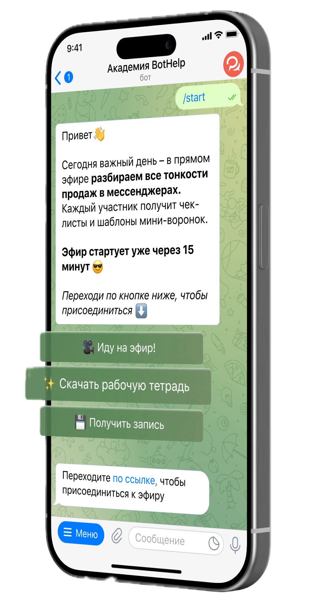 Отправляйте уведомления и лид-магниты. Автоматизируйте коммуникацию и поддерживайте её 24/7. Используйте рабочие сценарии воронок продаж и получайте заявки с конверсией до 80%.